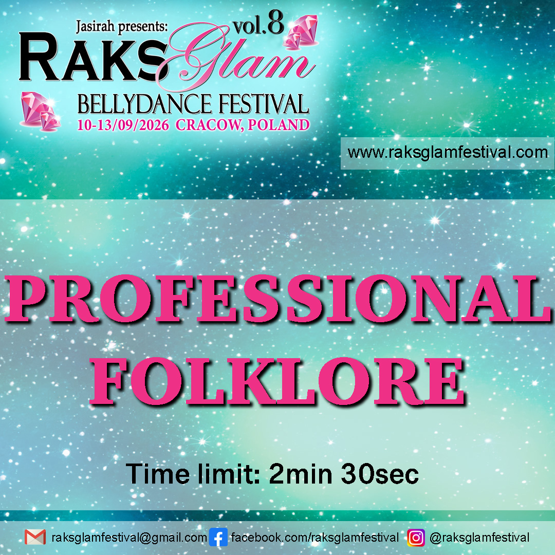 PRO – Professional dancers, teachers, master teachers, workshop teachers, professional commercial performers. Within this level you can perform in 3 different style categories: Raks Sharki, Folklore and Show/Fusion. You can also participate in Open Level categories such as: Tabla solo, Taksim or Grand Diva (if you are over 45), you can also be a member of a group. Choosing the Professional category you cannot dance at the same time as Semi-professional or beginner.